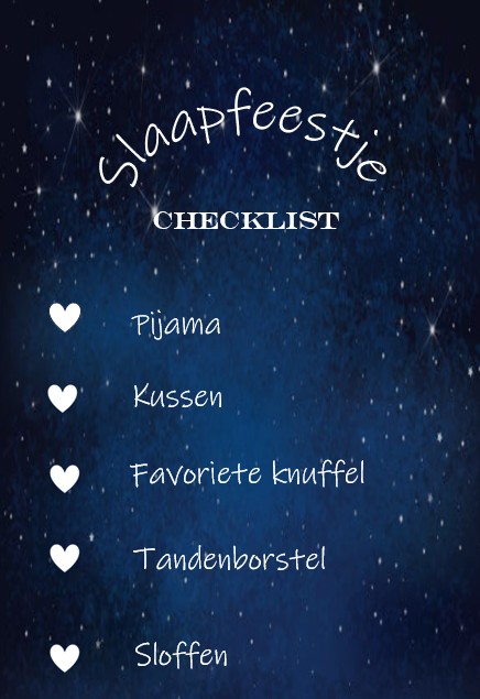 Slaapfeestje Checklist Als jij je VIP gasten uitnodigt, zorg dat je deze checklist erbij doet! Slaapfeestje checklistDownloaden